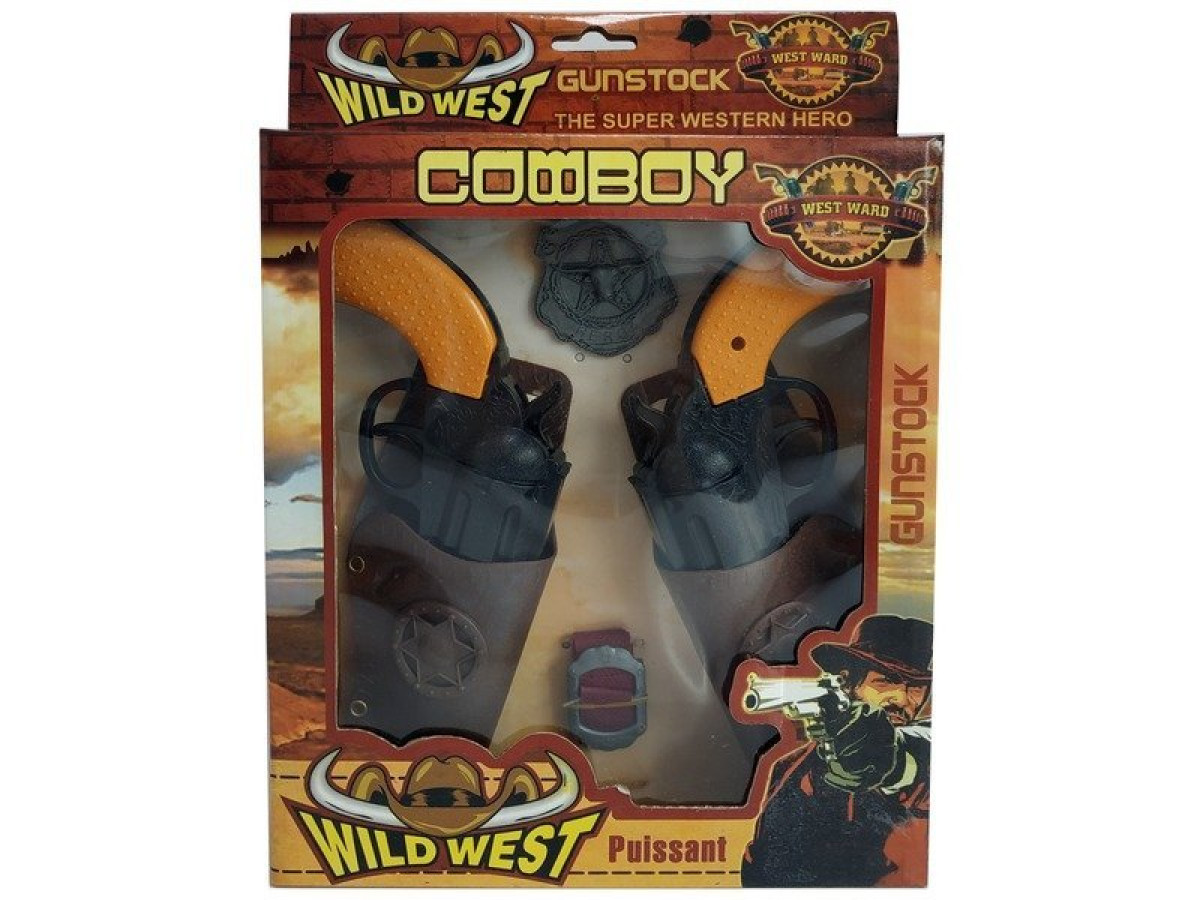 Öltözz be cowboynak, vedd magadhoz a pisztolyokat és őrizd a rendet! A Cowboy páros pisztoly készletben két revolvert találsz övvel, táskával és egy seriff csillaggal. A pisztolyok műanyagból készültek, és bármilyen cowboy, bandita vagy sheriff jelmezhesz tökéletesen illenek. A pisztolyokat a táskában tudod tartani, az öv állítható hosszúságú, így szélesebb és vékonyabb gyerekek is a derekukra tudják tenni. A pisztolyok méretei: 20 x 9 cm.