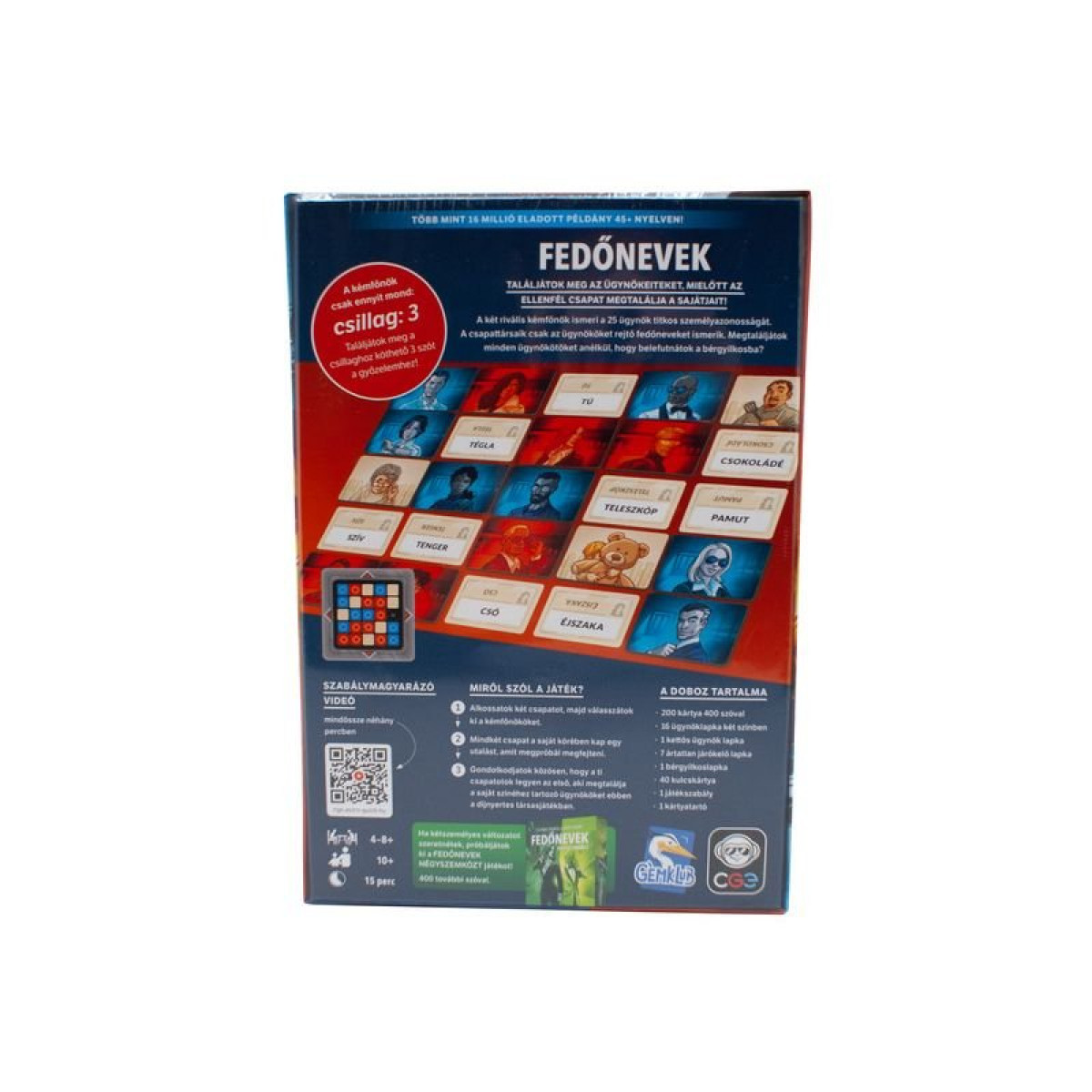 Két ügynökség összecsapása: melyikük kapcsolja össze okosabban a fedőneveit? A Fedőnevek zseniális, Év játéka díjas szóasszociációs partijáték. A két csapat vezetőinek olyan szavakat kell kitalálniuk, amelyek segítségével a társaik rájönnek, hogy a kirakott 25 szóból melyek a sajátjaik. A szókincset és a kreativitást fejlesztő társasjáték.