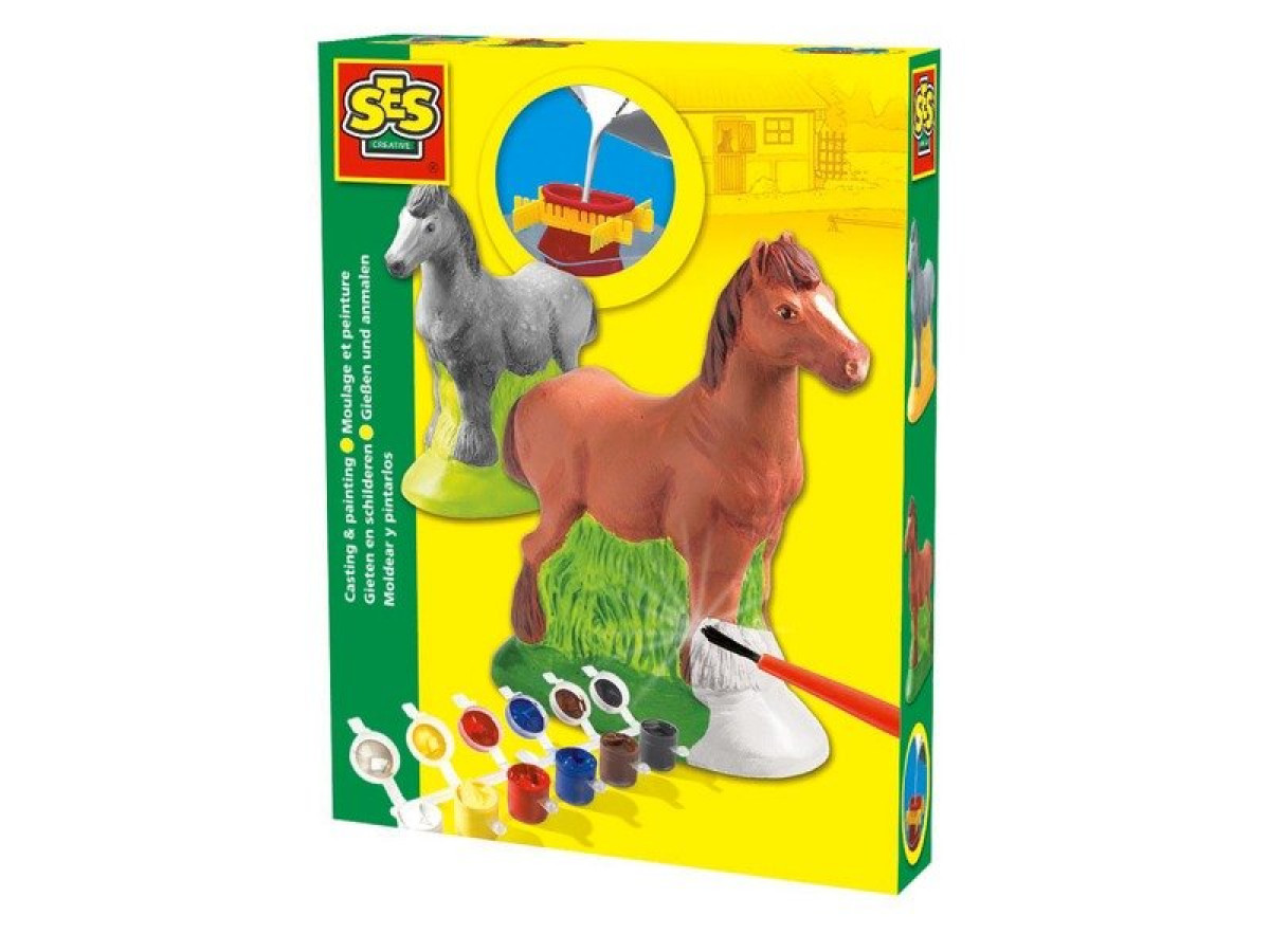 Készíts lovas szobrokat, majd fesd ki őket! A SES Lovacska 3D gipszkiöntő készlettel ló formájú szobrokat tudsz készíteni, amiket utána még színes festékekkel is ki tudsz dekorálni. Először önts vizet az öntőformába, majd szórd bele a gipszet, rázd össze, és legalább 3 órán keresztül hagyd kötni. 3 óra elteltével kend be szappanos vízzel a formát, majd húzd le róla, a szobrot további 24 órán keresztül hagyni kell száradni. Végül már csak fogd a színes festékeket, és kend be a szobrokat tetszés szerint! A Lovacska 3D gipszkiöntő készlet csomagolási méretei: 15 x 4 x 20 cm.
