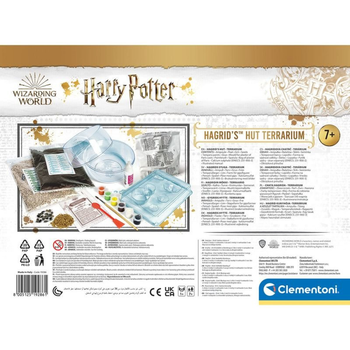 Alkosd meg a Harry Potter filmek egyik leghíresebb helyszínét az otthonodban. Állítsd össze, alkosd meg, öntözd, gondoskodj róla és nézd meg, hogy nő meg a szemed előtt a roxforti tiltott rengeteg. A dobozban különleges öntőformákat találsz, amelyek segítségével gipszből alkothatod meg Hagrid kunyhóját és a körülötte található sütőtököket. Ültesd el a magokat és hozd létre a saját, miniatűr ökoszisztémádat.