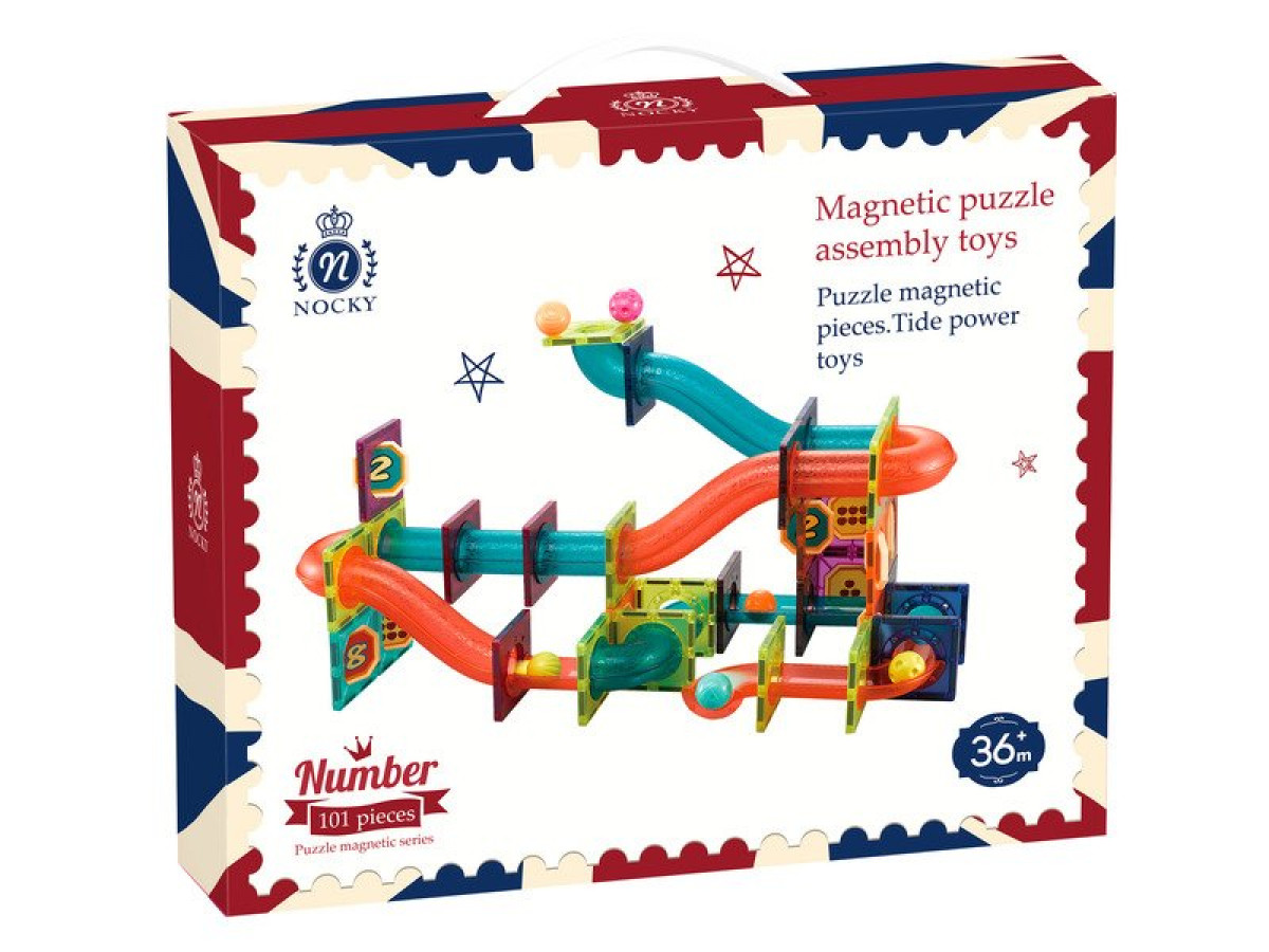 A színes csöveket összeállítva egy több emeletes rendszert készíthetsz, melyben a kis labdák szabadon futkározhatnak. A pályán és a golyókban is mágnes található, aminek a segítségével gyorsan mozoghatnak a gurítható elemek. Emellett, a golyófuttatón különböző számokat és díszeket találhatsz, melynek segítségével izgalmas játékokat és történeteket alkothatsz, miközben a labdák bejárják a pályát. A színes elemeknek és a gyorsan száguldozó golyóknak senki sem fog tudni ellenállni. Fejleszd a kreativitásod, miközben izgalmasabbnál izgalmasabb utakat építesz meg, színes golyóid számára. A játék közben pedig olyan fizikai fogalmakkal ismerkedhetsz meg, mint a gravitáció vagy épp a mágnesesség.