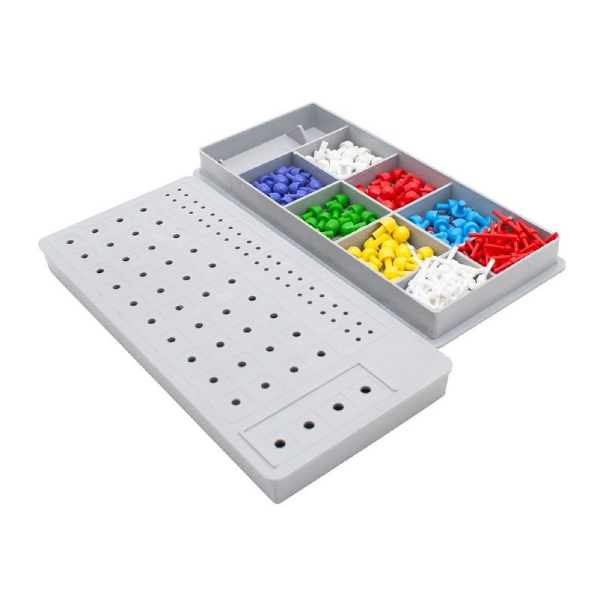 Változatos logikai játék 2 fő részére. Az egyik játékos kirak egy színsort és elrejti a házikó alá. Találd ki a rendelkezésedre álló lehetőségekből, hogy az ellenfeled milyen 4 színre gondolt, milyen sorrendben!