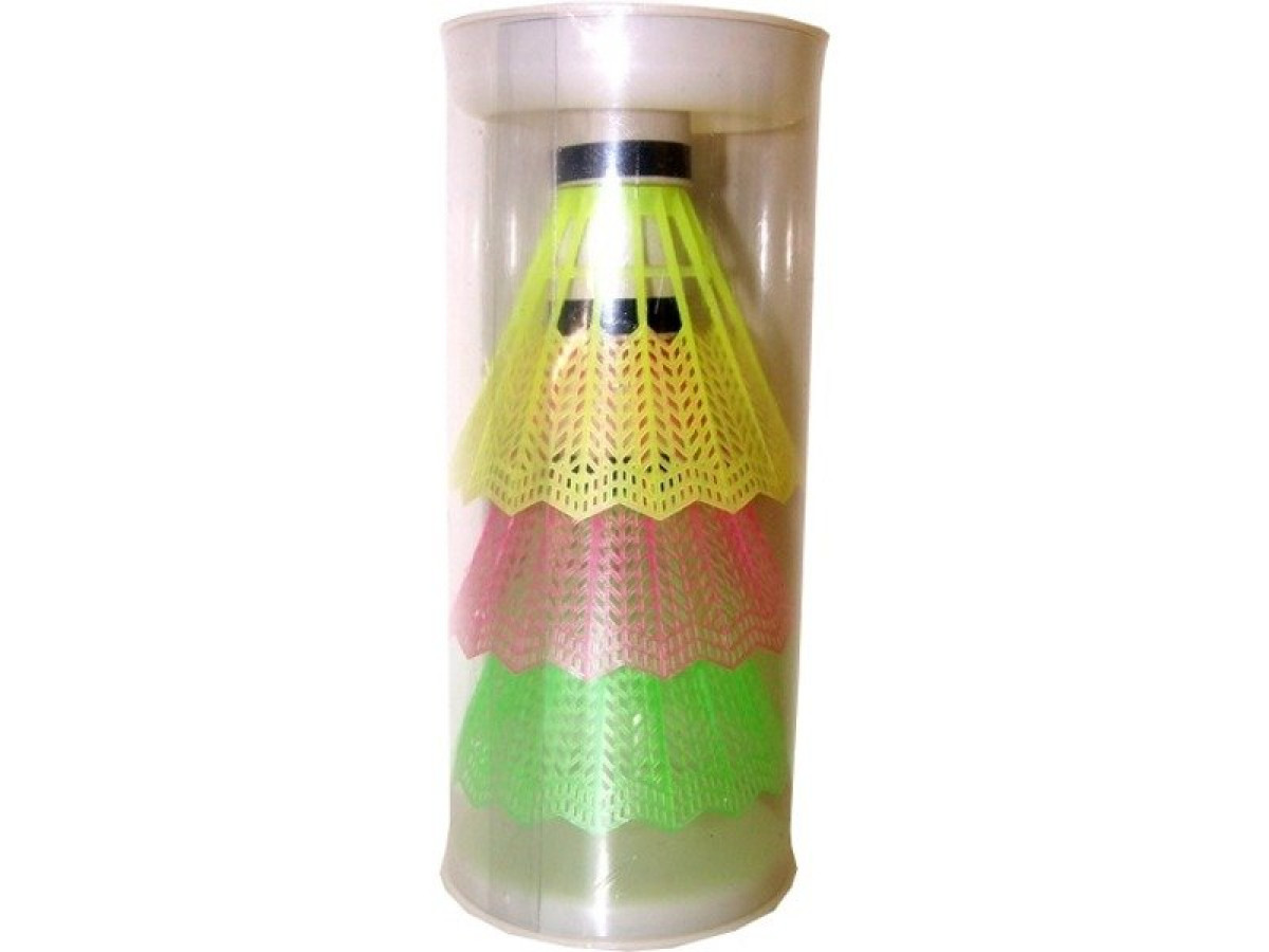 Pótoljátok az elveszett tollaslabdákat! A Színes tollaslabda 3 darabos készlet egy-egy zöld, sárga és rózsaszín, műanyag tollaslabdát tartalmaz, amik használhatók bármilyen ütővel! A tollaslabdák feje gumírozott, a labdák élénk színe láthatóvá teszi őket még a legerősebb napsütésben is! A Színes tollaslabda 3 darabos készlet hengeres csomagolású. Labdák mérete: 7 cm.