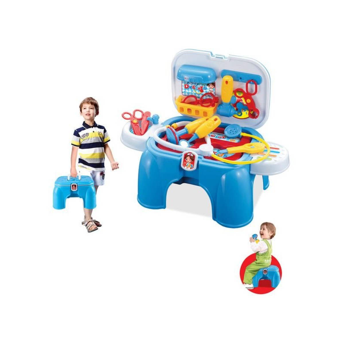 Ültesd le a beteget, vizsgáld és gyógyítsd meg! Az Orvosi készlet ülőkében mindent tartalmaz, amire egy felkészült doktornak szüksége van. A műanyag eszközökkel meg tudod vizsgálni a pácienst, a sztetoszkóppal hallgasd meg a szívverését! A reflexeket, a lázát, a látását és a fogait is végig tudod nézni az eszközökkel, és ha sikerült rájönnöd, hogy milyen betegségben szenved, akkor elkezdheted a kezelést. Az Orvosi készlet ülőkében műanyagból készült, könnyen hordozható. Az ülőkére leültetheted a beteget, a fedelében tudod tárolni az orvosi műszereket. Méretek: 39 x 19 x 26 cm.