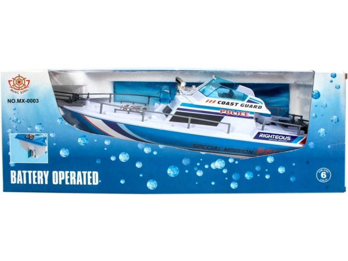 Úsztasd körbe-körbe a parti őrség hajóját! A Parti őrség elemes motorcsónak egy nagyobb műanyag hajó, ami hasonlít az amerikai parti őrség által használt csónakra. A hajó elemes meghajtású, ha bekapcsolod felpörög a propellere és elindul, a haladási irányt a kormánylapát elmozdításával tudod szabályozni. A hajót medencében, de még a fürdőkádban is használhatod! A Parti őrség elemes motorcsónak 6 darab AA ceruzaelemmel működik, a csomagolás az elemeket nem tartalmazza. Hajó méretei: 45 x 13 x 15 cm.