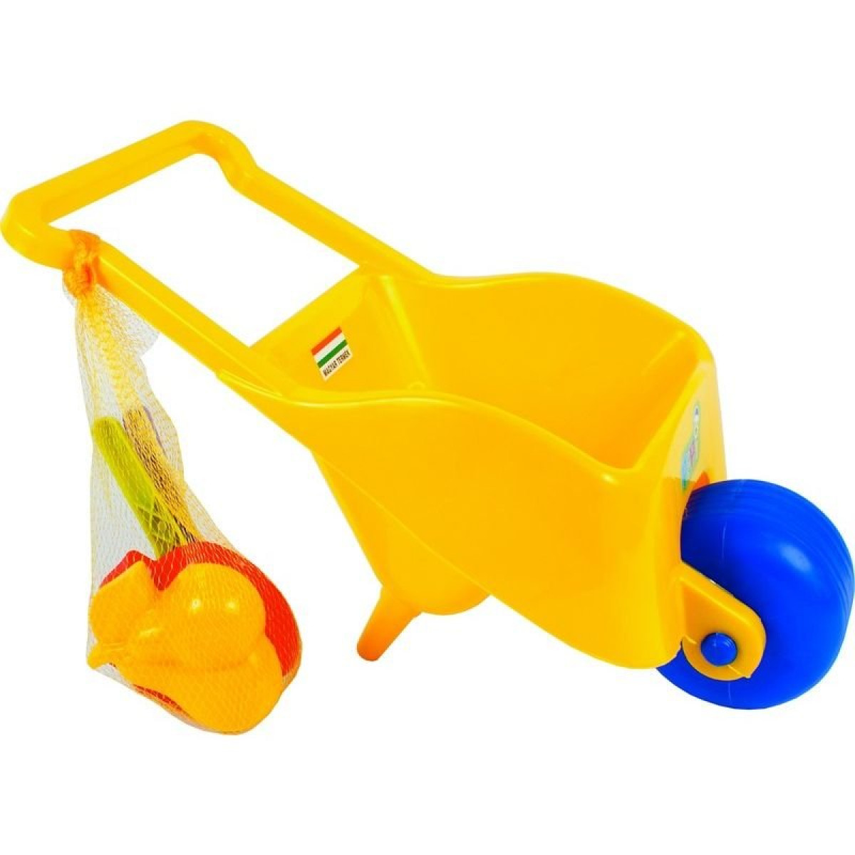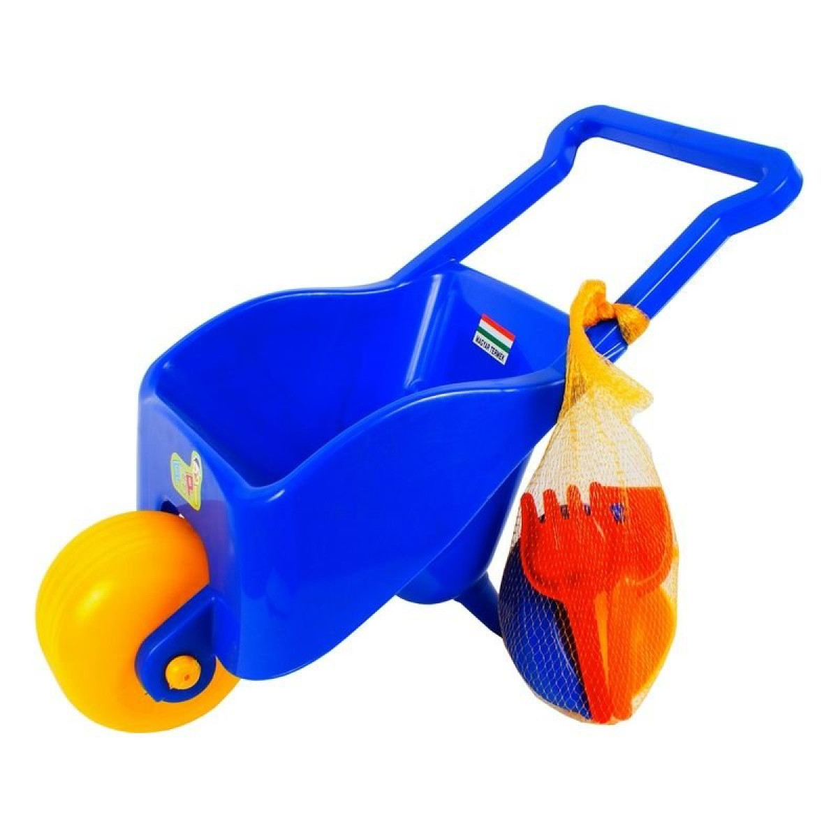 Műanyag, játék talicska szett, homokozó eszközökkel, 46 cm-es méretben
