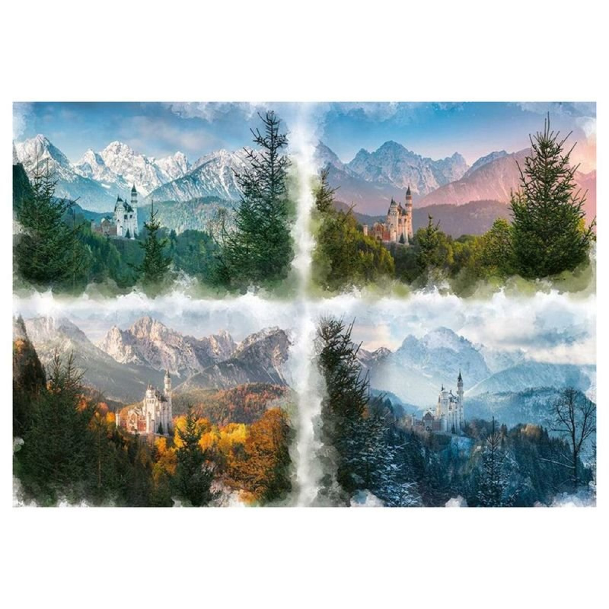 A Neuschwanstein kastély - Négy évszak című képen láthatjuk, hogy a világhírű német kastély látványa miként változik a különböző évszakok színeiben. A 200 méter magas sziklagerincen álló középkori lovagvárhoz ma évente több, mint egymillió turista látogat.