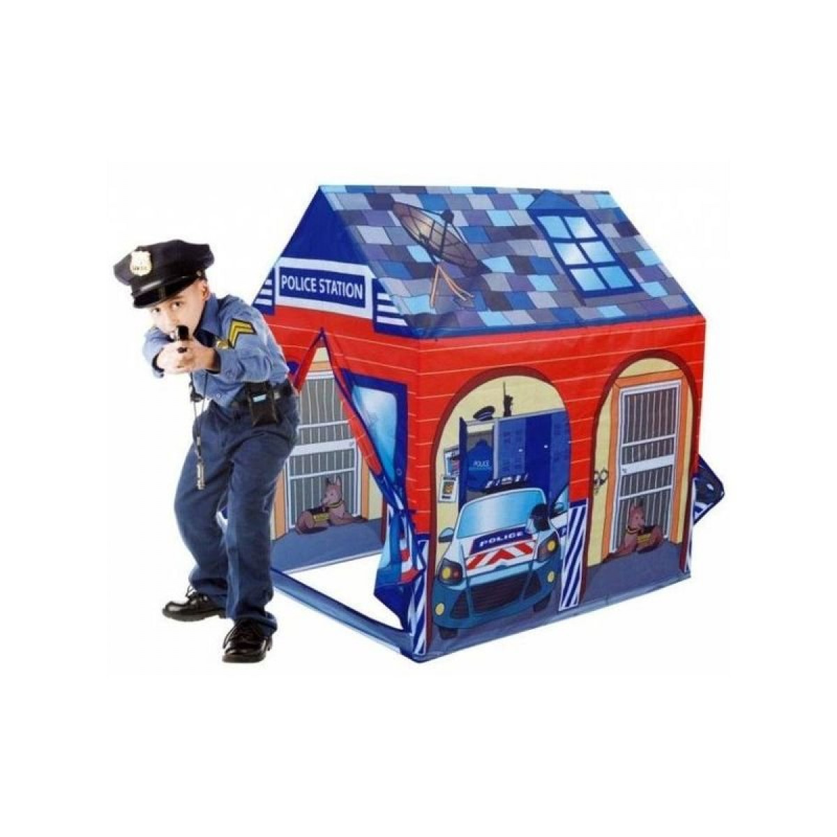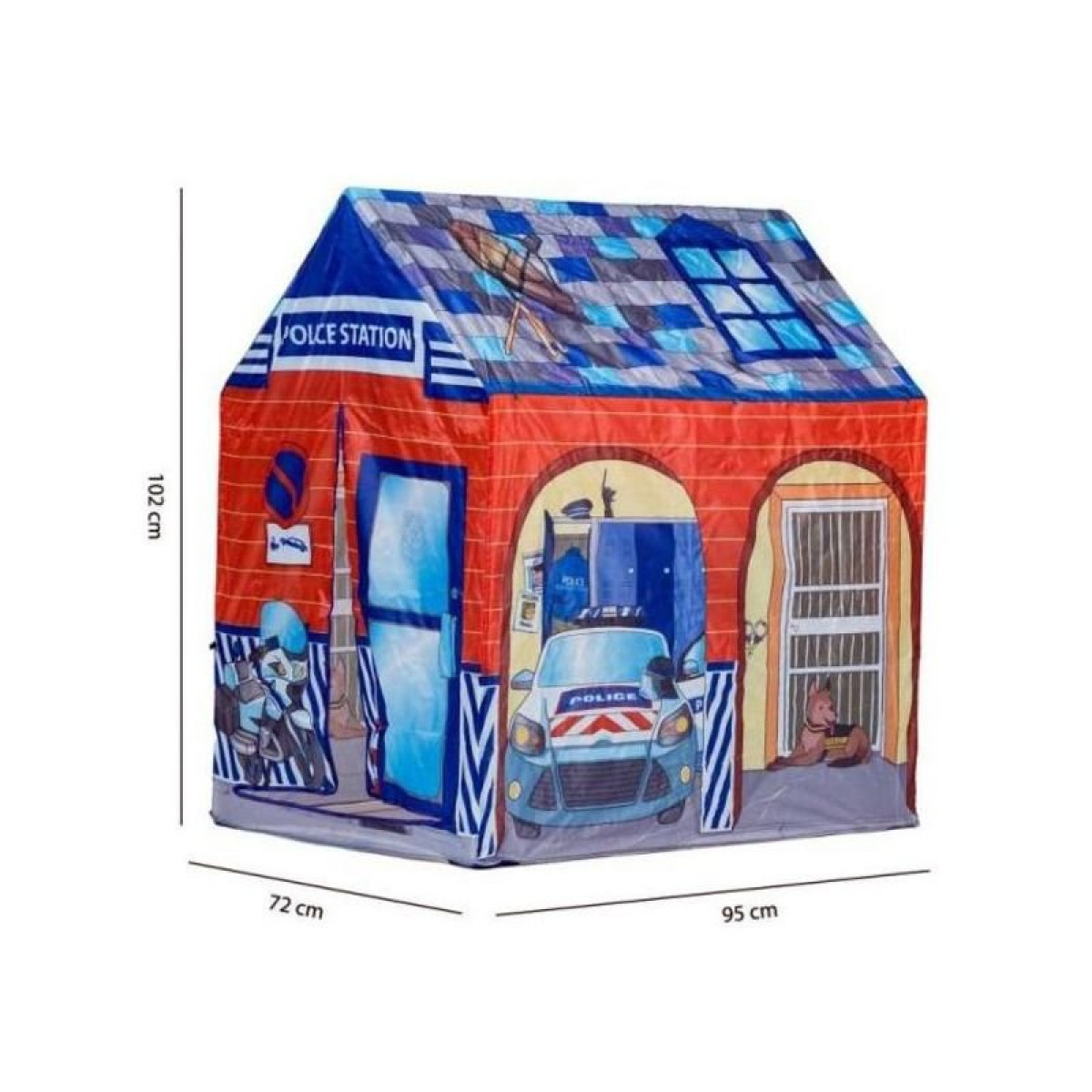 Állítsd fel a kertben a rendőrségi főhadiszállást! A Rendőrőrs játszósátor egy könnyű szerkezetű játszóház, amit a kertben, vagy a szobában is be tudsz rendezni. A házikó könnyű szerkezetű, a vékony falak megóvnak az erős napsütésből, az ajtó szárnyait a sátor oldalához lehet rögzíteni, hogy megfelelően szellőzzön. A sátor rendőrségi mintával készült, pár mozdulattal össze lehet állítani, akár a szobában, vagy a kertben is lehet benne játszani. A Rendőrőrs játszósátor összerakott méretei: 95 x 72 x 102 cm.
