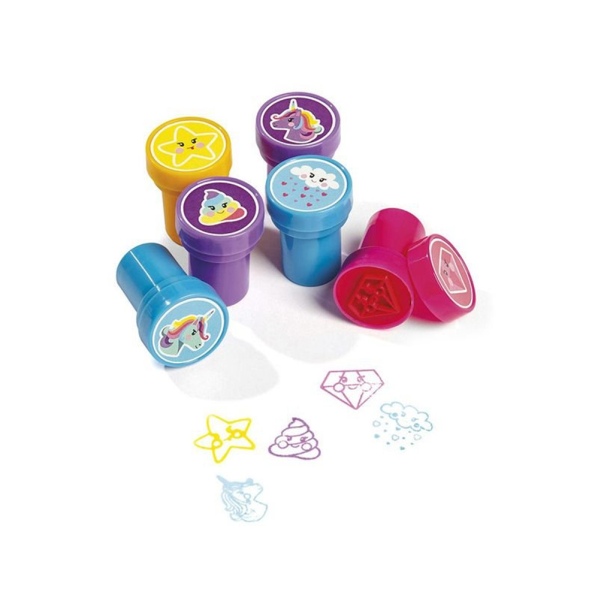 Az ismert Totum márka unikornisos bélyegzőkészlete, amiben nem csak unikornis mintát találsz, hanem más kedves figurákat is, mint például mosolygós drágakövek, felhő, csillag, vagy szívecske.