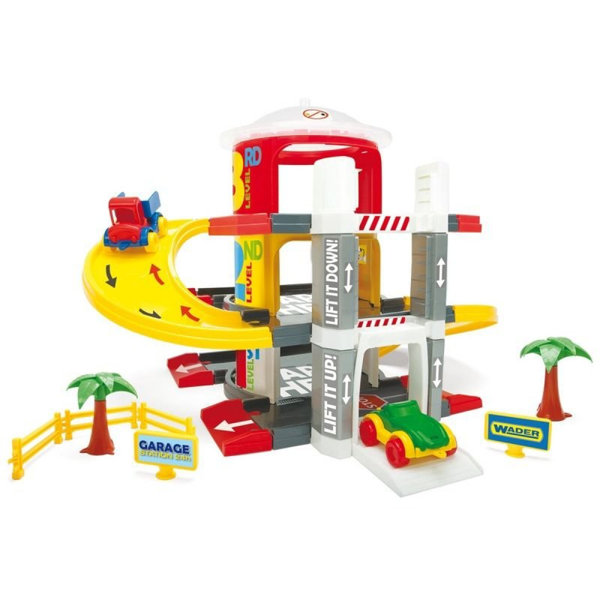 Szükséged van egy menő garázsra, ahol az autóiddal megpihenhetsz? Akkor megtaláltad azt, amit keresel! Utazz a mókás lifttel, hogy feljuss a második és harmadik emeletre! Nincs meg a megfelelő járgány, amivel új játékodat használhatnád? Ne aggódj! Ehhez a szuper szetthez 2 db kisautó is tartozik!